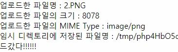 1 2 3 4 5 6 7 8 9 10 11 12 13 14 15 16 17 18 19 20 21 22 23 24 25 26 27 | <?php //업로드한 파일을 저장할 디렉토리 $save_dir = "uploads/"; //파일이 HTTP POST 방식을 통해 정상적으로 업로드되었는지 확인한다. if(is_uploaded_file($_FILES["image"]["tmp_name"])) { echo "업로드한 파일명 : ".$_FILES["image"]["name"] ."<br/>\n"; echo "업로드한 파일의 크기 : ".$_FILES["image"]["size"] ."<br/>\n"; echo "업로드한 파일의 MIME Type : ".$_FILES["image"]["type"] ."<br/>\n"; echo "임시 디렉토리에 저장된 파일명 : ".$_FILES["image"]["tmp_name"] ."<br/>\n"; //파일을 저장할 디렉토리 및 파일명 $dest = $save_dir .basename($_FILES["image"]["name"]); //파일을 지정한 디렉토리에 저장 if(!move_uploaded_file($_FILES["image"]["tmp_name"], $dest)){ echo "error : ".$_FILES['image']['error']."<br/>\n"; die("파일을 지정한 디렉토리에 저장하는데 실패했습니다."); } else{ echo "드갔다!!!!!!"; } } ?> | cs |